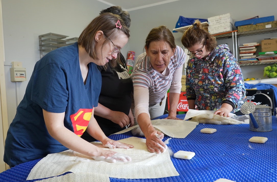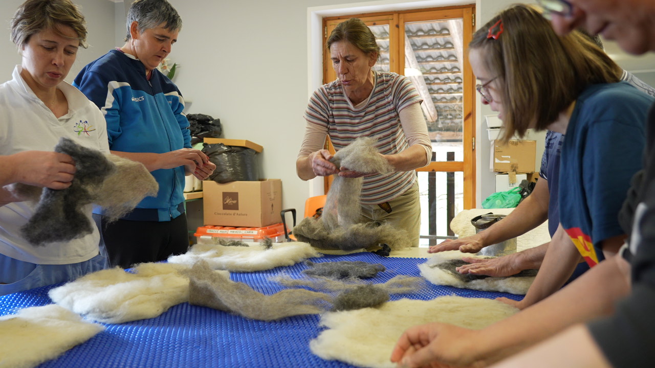 La lana proveniente dagli allevamenti della Valle Stura viene pulita, lavata e cardata presso piccole aziende del territorio e lavorata a mano con la collaborazione dei Centri diurni “Mistral” (Cuneo), “Centro lavoro protetto” (Cuneo), “Ou Bourc” (Borgo San Dalmazzo) e “Cascina Ambrosino” (Peveragno) che da aprile 2025 possono contare anche su un laboratorio di produzione a Roccasparvera. Sempre da quest’anno, alcuni prodotti sono realizzati anche in collaborazione con la sartoria sociale dell’Emporio Margherita, che riutilizza in modo creativo scampoli e scarti di tessuti e passamanerie per realizzare nuovi oggetti sostenibili, favorendo l’inclusione socio-lavorativa di persone in condizione di fragilità.