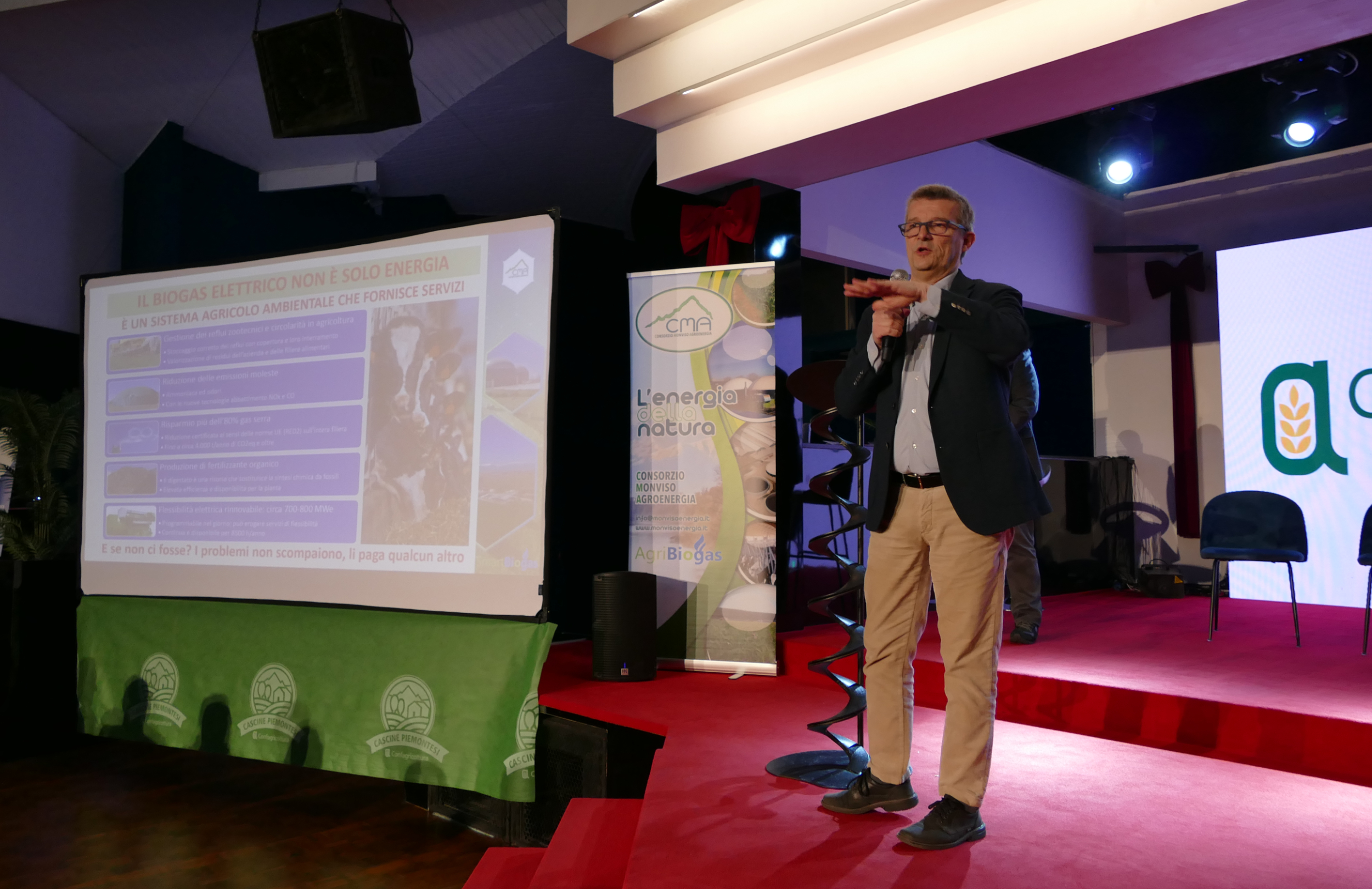 A seguire i partecipanti si sono trasferiti a “Le Cupole” per il convegno sul tema oggetto dell’iniziativa che ha analizzato le criticità contenute nella bozza del Decreto-legge “Bollette”. Il momento, inaugurato dei saluti istituzionali di Enrico Allasia e del presidente della Camera di Commercio di Cuneo, Luca Crosetto, è entrato nel vivo con l’approfondimento “Il biogas elettrico – Una risorsa essenziale per l’agricoltura italiana” a cura di Andrea Chiabrando, direttore tecnico del Consorzio Monviso Agroenergie. “Il biogas elettrico – ha precisato nel suo intervento non serve solo a produrre energia rinnovabile, ma è anche uno strumento fondamentale per aiutare l’agricoltura, proteggere l’ambiente e ridurre le emissioni inquinanti. Grazie agli impianti di biogas, gli scarti agricoli e i reflui degli allevamenti vengono recuperati invece di diventare un problema. Questo permette di: ridurre cattivi odori e inquinamento, tagliare le emissioni di gas serra (oltre l’80%), produrre fertilizzanti naturali, riducendo l’uso di prodotti chimici e creare un sistema di economia circolare, dove nulla viene sprecato”.