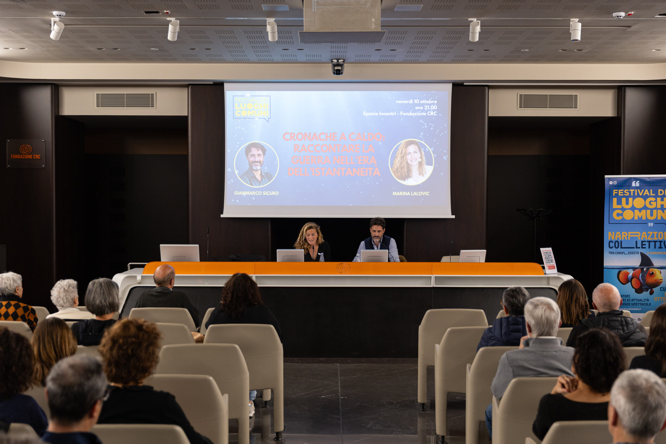 Intenso, crudo e fortemente partecipato con domande e interventi, l’appuntamento con i giornalisti Rai, Marina Lalovic e Giammarco Sicuro, che hanno portato la loro esperienza di inviati nei conflitti contemporanei, spiegando come raccontare la guerra nell’era dell’istantaneità, senza tradirne la complessità.