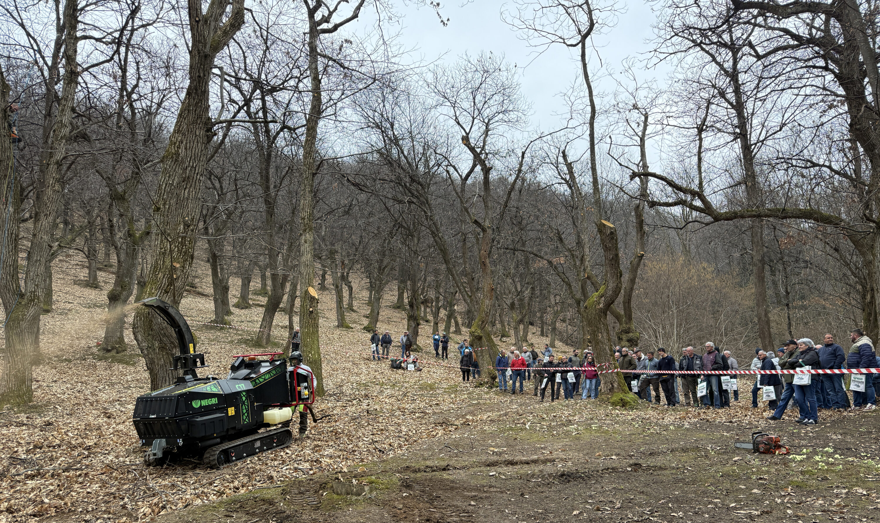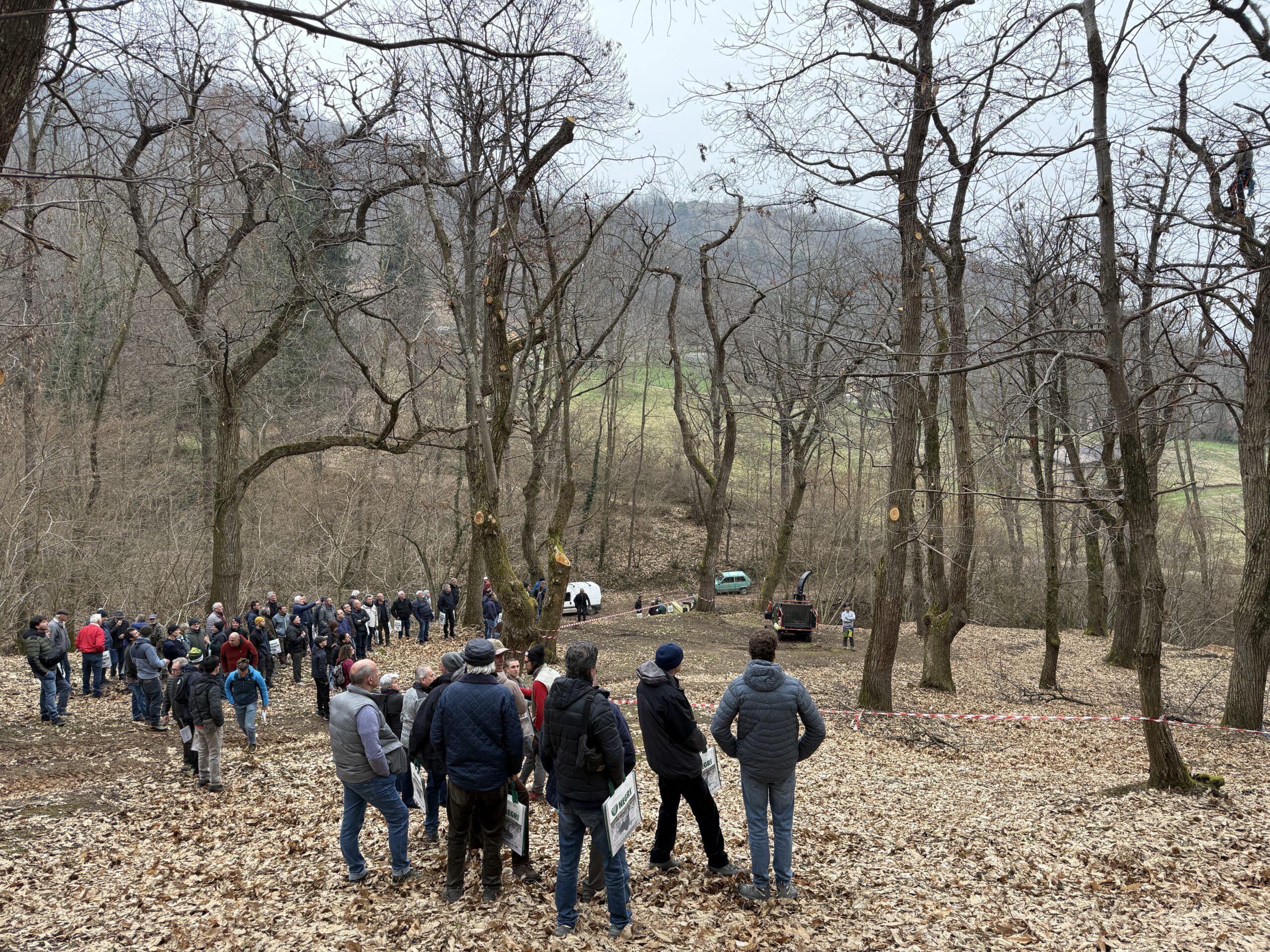 Terminata la sessione di interventi, i partecipanti si sono trasferiti in campo per assistere a prove di raccolta meccanica e ad attività di potatura di ringiovanimento con la tecnica del tree climbing. In particolare, è stata molto apprezzata la risposta vegetativa delle piante su cui si era intervenuti durante la prima edizione dell’evento nel 2025. Di sicuro interesse, infine, la dimostrazione di attrezzature per la raccolta e non solo, con l’obiettivo di favorire sempre più l’applicazione della meccanizzazione nella castanicoltura del territorio. A concludere la giornata un momento conviviale per tutti i partecipanti.