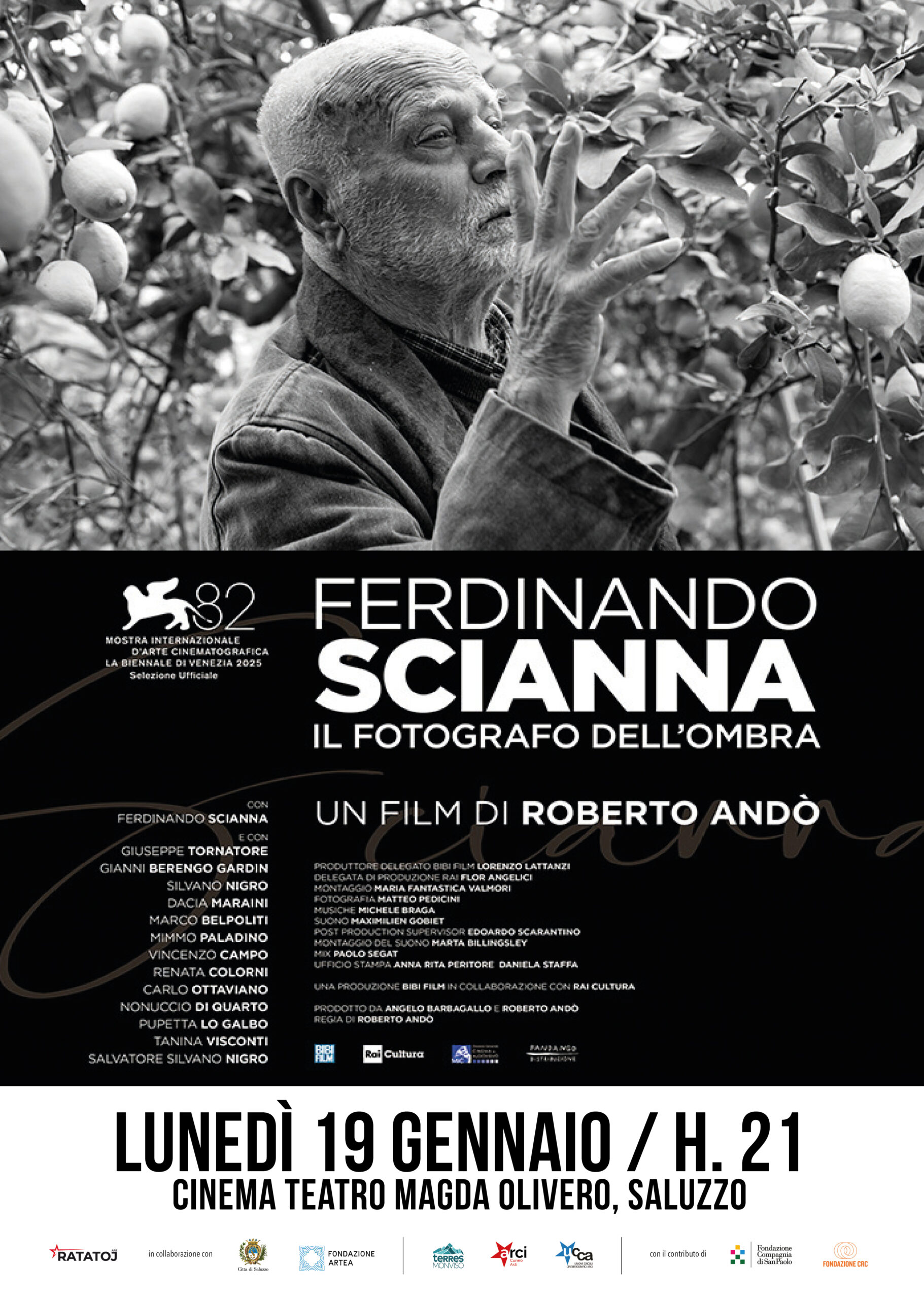 Lunedì 19 gennaio, alle 21.00, invece, sarà il Cinema Teatro Magda Olivero di Saluzzo (via Palazzo di Città, 15) ad ospitare eccezionalmente la proiezione del docu-film “Ferdinando Scianna. Il fotografo dell’ombra“, diretto da Roberto Andò e presentato in anteprima alla 82esima Mostra Internazionale d’Arte Cinematografica della Biennale di Venezia. Il film esplora la carriera e la vita di Scianna, offrendo uno sguardo approfondito sulle sue opere e sul contesto in cui sono state create, coinvolgendo molti di coloro che ne hanno fatto parte, tra giganti della cultura del Novecento e vecchi amici di gioventù. Al termine della proiezione si potranno approfondire alcuni dei temi emersi dalla visione, grazie alla presenza sul palco del regista del documentario Roberto Andò, del fotografo e protagonista Ferdinando Scianna e del direttore della Fondazione Artea, Davide De Luca. Evento in collaborazione con l’associazione Ratatoj APS, nell’ambito della rassegna Lunedì Cinema, inverno 2026. Ingresso libero fino ad esaurimento posti, apertura al pubblico ore 20.30. Trailer ufficiale: https://www.youtube.com/watch?v=n5ckyd7YRKI